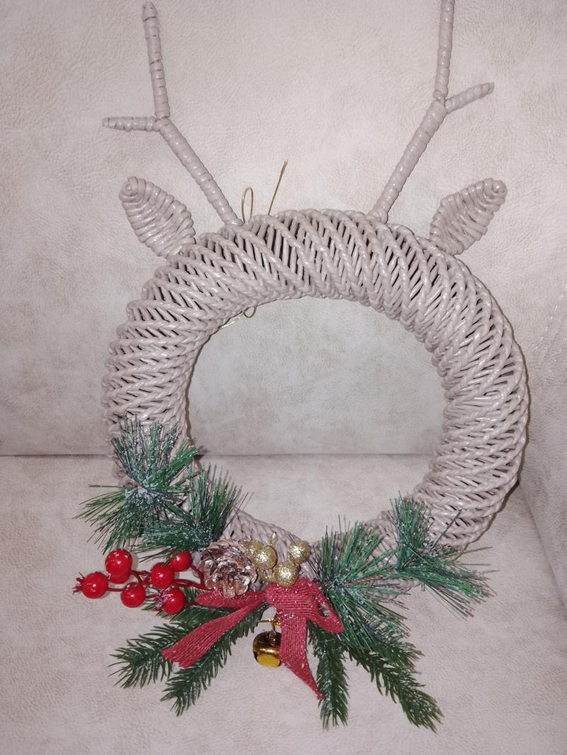 "Рождественские веночки" из бумажной лозы Предлагаю украсить ваш дом рождественскими веночками из бумажной лозы ручной работы. Веночки прочные, покрыты мебельным лаком три раза. Можно протирать влажной салфеткой. Они создадут в доме атмосферу праздника и уюта. Веночки прочные, прослужат вам долго и будут рабовать из года в год. Диаметр веночка с оленьими рожками 26см., толщина 6см. Диаметр остальных веночков 32см., толщина 7см. Цена каждого веночка 2500 руб. К каждому веночку в подарок две елочных игрушки из бумажной лозы.