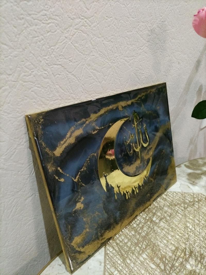 Мусульманская картина. Картина выполнена вручную из эпоксидной смолы. Размер:ширина-50, высота-40.